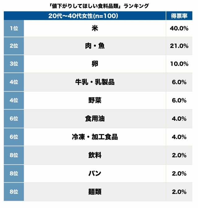 「米の消費量が多いから、値下がりしてくれないと困る」(40歳/女性)