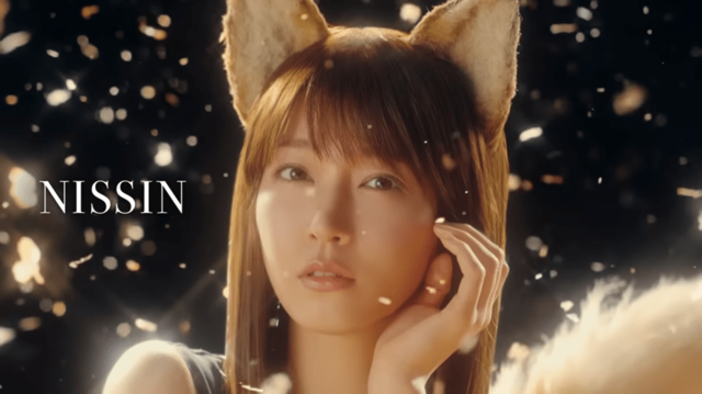 日清「どん兵衛」のCMで2017年から2022年まで“どんぎつね”を演じていた吉岡里帆。彼女はCMを卒業していたが、26年3月31日に4年ぶりに復活。当時のどんぎつね(吉岡)は白を基調とした愛らしいファッションとキュートなふるまいが魅力的なキャラクターだったが、今回は黒いドレス姿。妖艶な大人の魅力を放っている。