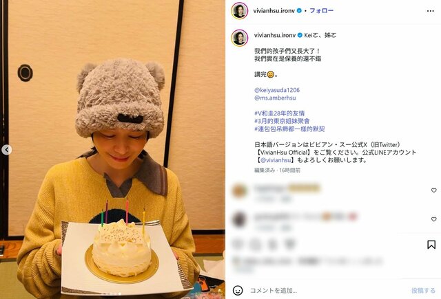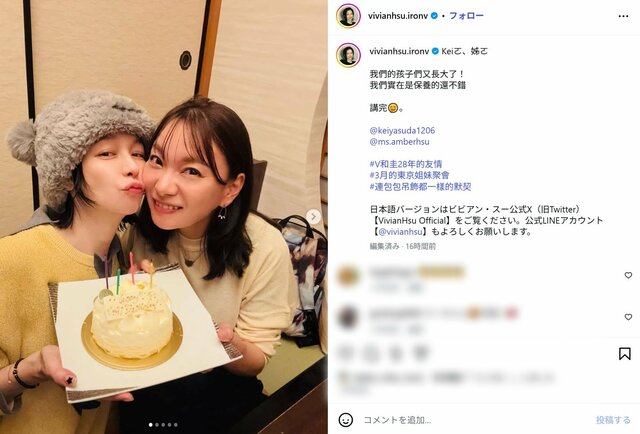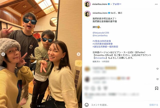 ビビアン・スー、28年前“ブラビ”時代からのタレント親友との仲良しショットが沸騰 「子供達も大きくなった」感動も ピンズバNEWS編集部 2026.4.2 女優 女性アイドル (3/3ページ) 1ページ目から読む ■【画像】ビビアン、“ブラビ”時代からの親友との仲良しショット 「子供達も大きく…」成長が凄い 元モーニング娘。でタレントの保田圭がインスタグラムを更新。28年来の親友だというビビアン・スーの誕生日を祝福したことを報告。ビビアンも自身のインスタに保田とのツーショット、自身、保田の子どもとの4ショットをアップし、多くのファンを歓喜させている。 ※画像はビビアン・スーの公式インスタグラムより、以下同 この画像の記事を読む 1 2 3