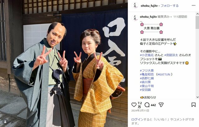 小芝風花(28)は、24年の主演ドラマ『大奥』(フジテレビ系)で、徳川家治の正室(御台所)・五十宮倫子役を演じた。家治を演じたのが亀梨和也(40)、そして家治の従弟・松平定信役を宮舘涼太(33)が務めた。
