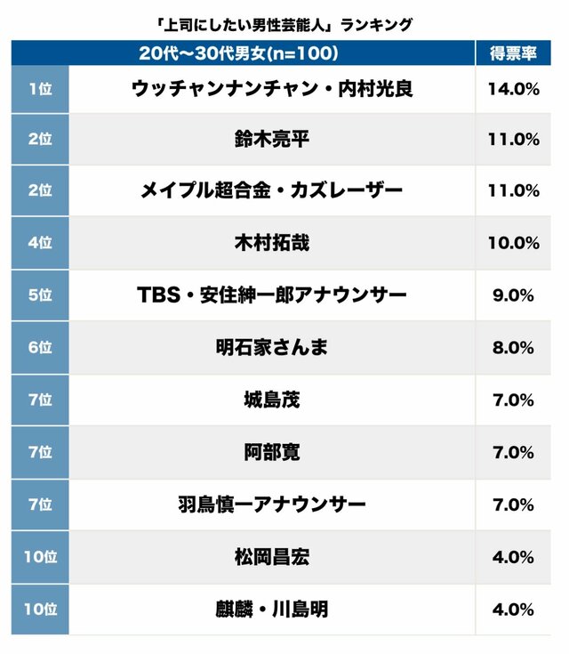 そして第1位(14.0%)は、ウッチャンナンチャン・内村光良。