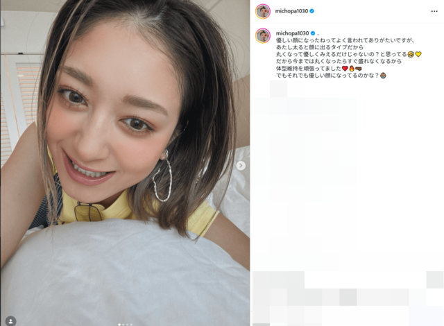 第1子妊娠のみちょぱ、「優しい顔になってるのかな?」“顔面変化”指摘に反応 最新リラックスショットも公開 ピンズバNEWS編集部 2026.4.6 エンタメ (2/2ページ) 1ページ目から読む ■【画像】「優しい顔になったね」「ママの顔に」第1子妊娠みちょぱの“顔面変化” 《優しい顔になったね》という周囲の“顔面変化”指摘に《優しい顔になってるのかな?》と反応したみちょぱ。現在、第1子妊娠中だが、“ママ・みちょぱ”に進化していくこれからが楽しみだ。 ※画像はみちょぱのインスタグラムより この投稿をInstagramで見る みちょぱ(池田美優)(@michopa1030)がシェアした投稿 この画像の記事を読む 1 2