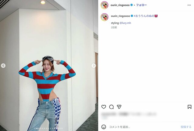 王林、ウエスト見せ「ぶったまげ」スタイル沸騰も“唯一無二キャラ”喪失の懸念 専門家は「使い分け」指摘も ピンズバNEWS編集部 2026.4.9 テレビ&ラジオ 女性アイドル (3/3ページ) 1ページ目から読む ■【画像】「ぶったまげ」王林、ド派手“レオタードふうトップス”で大胆ウエスト見せスタイル 王林がインスタグラムを更新。赤とライトブルーのボーダーの“レオタードふうトップス”にデニムジーンズを合わせたウエストを大胆に披露したコーデなどに対し、《ぶったまげで、腰抜かす》《色気が半端ない》などの声が上がっている。 ※画像は王林の公式インスタグラムより、以下同 この画像の記事を読む 1 2 3