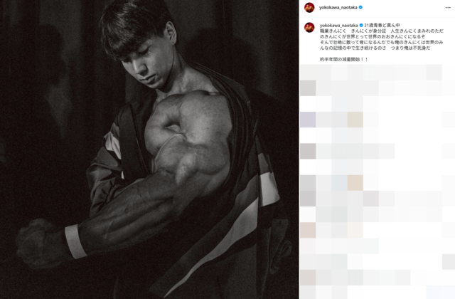 筋肉タレント・横川尚隆、人間離れした上腕二頭筋に騒然「肩にベーグル埋まってる」「戸愚呂弟みたいな体」 世界大会へ向け減量開始 ピンズバNEWS編集部 2026.4.11 エンタメ (2/2ページ) 1ページ目から読む ■【画像】「肩にベーグル埋まってるやんけ」横川尚隆、人間離れした上腕二頭筋 《肩にベーグル埋まってるやんけ》《もはやきんにくが本体》《戸愚呂弟みたいな体って現実にいるんや》という声があがるほど、もはや人体の概念を超えた存在感を放つ横川尚隆。 ※画像は横川尚隆のインスタグラムより この画像の記事を読む 1 2