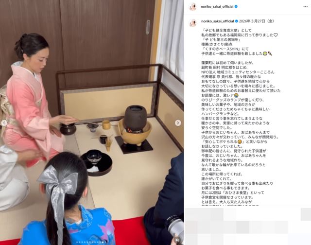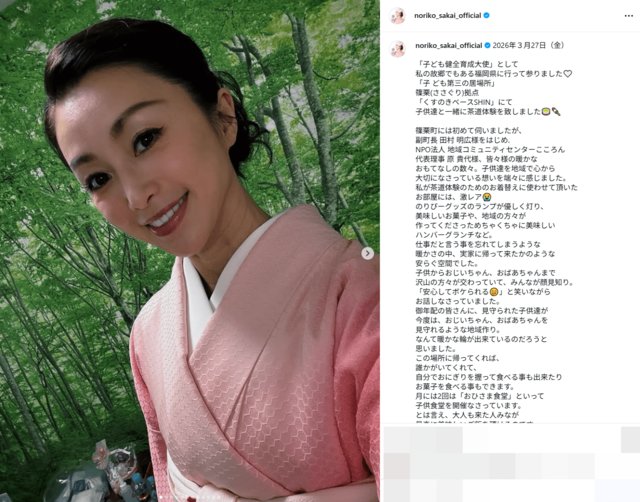 酒井法子・55歳、“キリッとアーチ眉”が印象的な春めくピンク着物姿で魅了「神々しい美しさ」 ピンズバNEWS編集部 2026.4.12 エンタメ (2/2ページ) 1ページ目から読む ■【画像】「神々しい美しさ」酒井法子、“キリッとアーチ眉”が印象的な春めくピンク着物姿 《神々しい美しさ最高》と惜しみない称賛が贈られた酒井法子の今回の投稿。『子ども健全育成大使』としての使命感と、永遠のアイドルのりピーとしての華やかさを両立する彼女からこれからも目が離せない。 ※画像は酒井法子のインスタグラムより、以下同 この画像の記事を読む 1 2