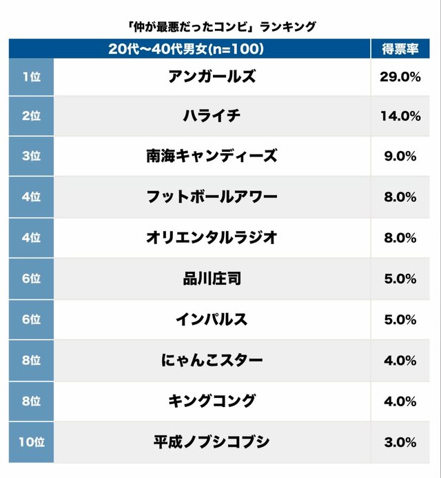 そして第1位(29.0%)は、アンガールズ。