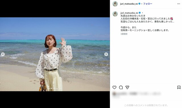 ※画像は松岡朱里アナの公式インスタグラムより、以下同