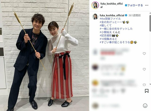「お似合いな共演カップル」ランキング、波瑠&高杉真宙を抑えた「結婚が現実になった」2人は【トップ3】 ピンズバNEWS編集部 2026.4.22 女優 俳優 (4/4ページ) 1ページ目から読む ■【画像】小芝風花“5年同棲愛”報道のお相手イケメンとの爽やか2ショット 小芝風花は、過去にフジテレビ系『占ってもいいですか?』で、「男運がめちゃくちゃ悪い」「不倫される」とショッキングな予言をされたが、小関裕太との“5年同棲愛”が報じられた。お似合いの2人にファンからは祝福の声も。 小芝風花 公式インスタグラムより この画像の記事を読む 1 2 3 4
