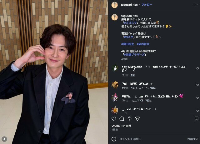 岡田将生・染谷将太『田鎖ブラザーズ』早くも春ドラマ勝利が確定、考察ドラマの弱点をものともしない“細部まで作り込まれた”圧倒的なクオリティ ドラマライター・ヤマカワ 2026.4.24 テレビドラマ (3/3ページ) 1ページ目から読む ■【画像】岡田将生、ポケットに染谷将太の衝撃『田鎖ブラザーズ』番宣オフショにファンざわざわ プライベートでも親交のある岡田と染谷の息はぴったり。 ※画像は『田鎖ブラザーズ』公式インスタグラムアカウントより ■TBS『田鎖ブラザーズ』公式サイト この画像の記事を読む 1 2 3