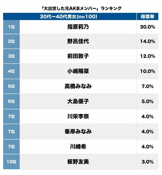 そして第1位(30.0%)は、指原莉乃。