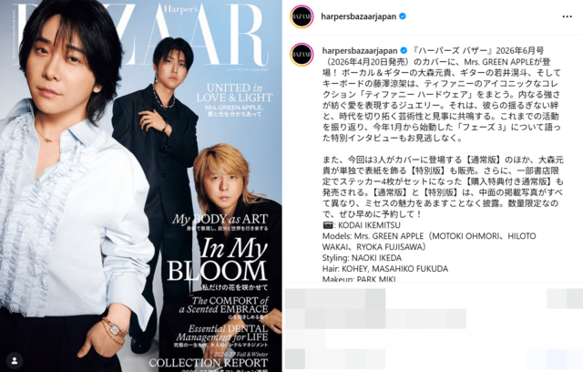 “4000万ネックレス”着用のミセス藤澤涼架が「究極のギャップ萌え」沸騰 バラエティ&俳優業…マルチな才能が開花 ピンズバNEWS編集部 2026.4.27 アーティスト エンタメ (2/2ページ) 1ページ目から読む ■【画像】「究極のギャップ萌え」藤澤涼架、胸元チラリの大サービス姿 “4000万ネックレス”着用の爆イケスタイリングが《究極のギャップ萌え》と沸騰中のミセス藤澤涼架。ある意味、ミセスの今後を占う重要なキーパーソンと言えるのかも。 ※画像は『Harper’s BAZAAR』(ハースト婦人画報社)の公式インスタグラムより、以下同 この画像の記事を読む 1 2