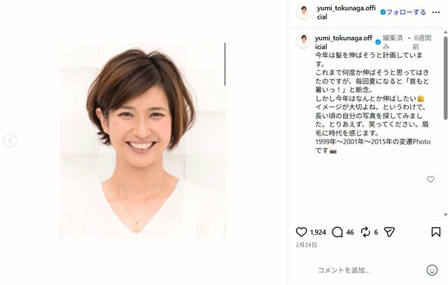 内村光良、「ウッチャンなら見たいかも」総合司会就任で“『24時間テレビ』アレルギー”も軽減する「最強MC」の好感度 ピンズバNEWS編集部 2026.4.28 テレビ&ラジオ お笑い エンタメ (3/3ページ) 1ページ目から読む ■【画像】内村光良の妻・元テレ朝美人アナ、結婚前後「3種類の圧巻美貌」姿 ウッチャンナンチャン・内村光良の妻で元テレビ朝日アナウンサーの徳永有美は『報道ステーション』(テレビ朝日系)に金曜MCとして出演中。 徳永は今年2月、《1999年〜2001年〜2015年の変遷Photoです》と、3枚の写真をインスタグラムに投稿。最初の2枚は、内村と2005年に結婚する前、若かりし頃の写真である。 ※画像は徳永有美公式インスタグラムより、以下同 この画像の記事を読む 1 2 3