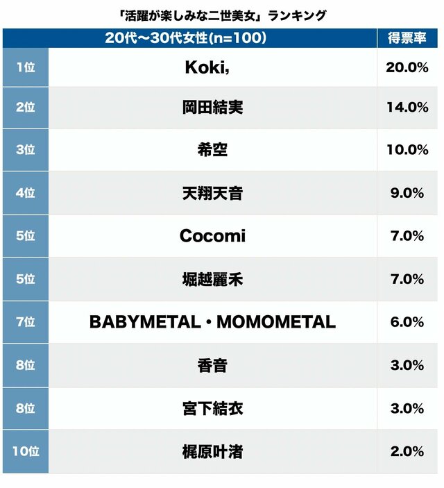 そして、第1位(20.0%)は、Koki,。