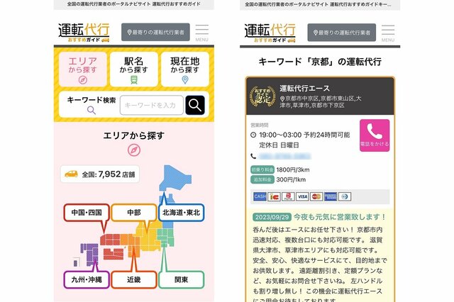 不正請求、保険未加入、無認可業者…悪徳業者が横行の「運転代行」の新たな選び方!新オープン専門情報サイト代表に聞いた ピンズバNEWS編集部 2023.10.15 マネー ライフ (5/5ページ) 1ページ目から読む ■【画像】悪徳業者、闇業者も横行…閉鎖的な「運転代行」業界に一石 視覚的に使いやすいデザインも好評だという。 「運転代行おすすめガイド」の利用画面 この画像の記事を読む 1 2 3 4 5