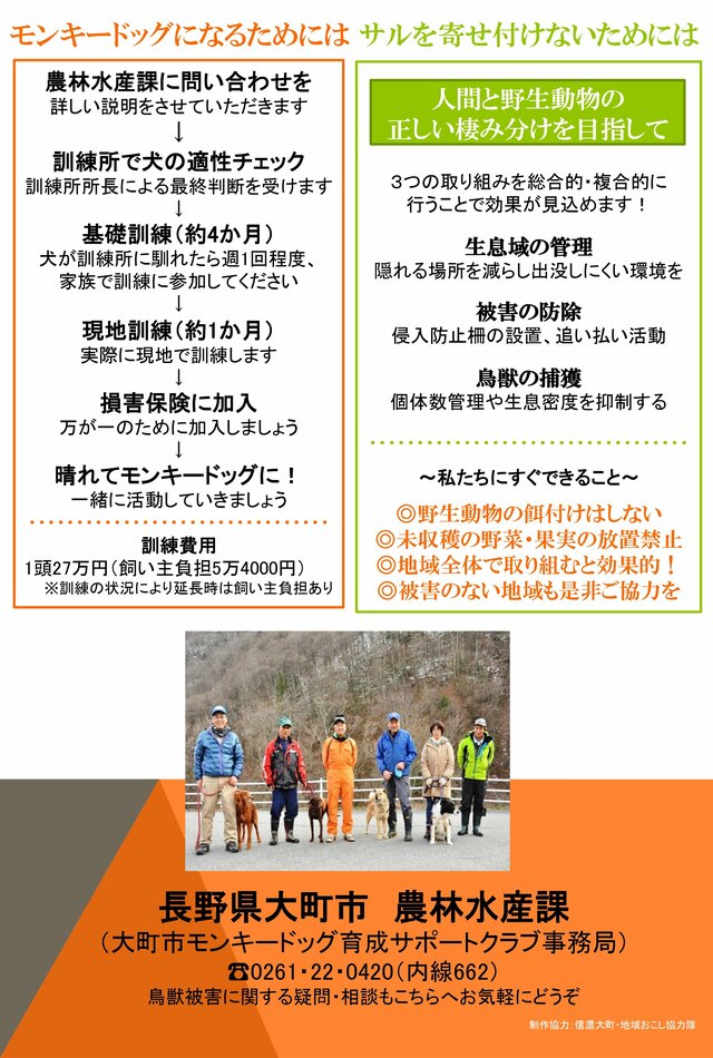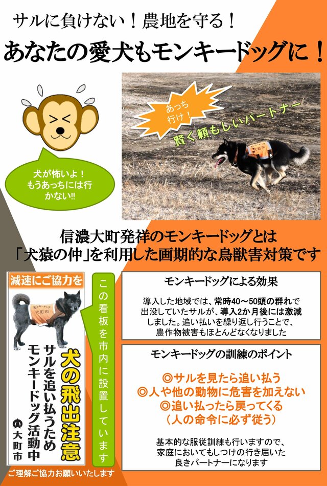 「アーバンモンキー・アーバンフォックス」人里に出現する野生動物 背景に「オオカミ絶滅」と「犬の位置付け変化」専門家は分析 ピンズバNEWS編集部 2024.6.1 (4/4ページ) 1ページ目から読む ■【画像】サルを追い払う「モンキードッグ」 なるのため訓練内容とその効果 「犬猿の仲」を活用した取り組みで、注目されている。 ※画像は長野県大町市公式HPより ※画像は長野県大町市公式HPより この画像の記事を読む 1 2 3 4