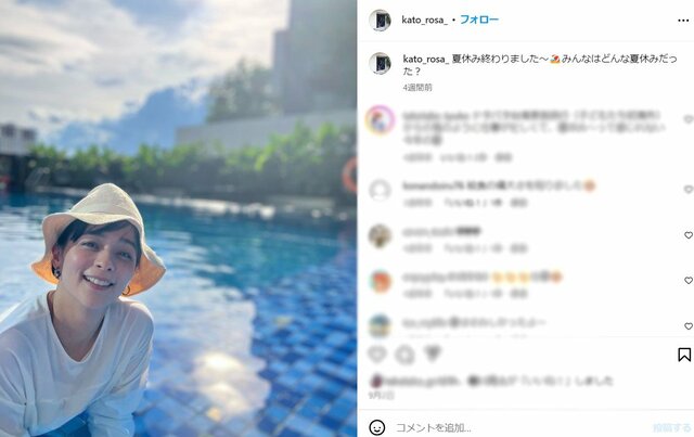 「なんて美しい」美貌健在の加藤ローサ、14年ぶり主演ドラマコメントが“SNS炎上” 真意直撃の回答 ピンズバNEWS編集部 2024.10.3 テレビ&ラジオ テレビドラマ 女優 (3/3ページ) 1ページ目から読む ■【画像】「なんて美しい」美貌健在、14年ぶりにドラマ主演をする加藤ローサ39歳の近影 加藤は9月2日に《夏休み終わりました〜みんなはどんな夏休みだった?》と、水遊びした際の写真を添えて投稿。《ローサちゃんかわいくて癒やされる素敵》《可愛いです》《なんて美しい》などの声が寄せられている。 ※画像は加藤ローサの公式インスタグラム『@kato_rosa_』より この画像の記事を読む 1 2 3