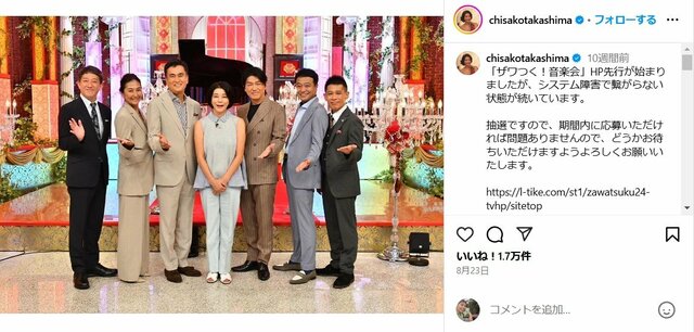 「顔がスネ夫」高嶋ちさ子の整形騒動も一蹴 『ザワつく』が6年連続大晦日放送へ 民放最高視聴率番組のワケ ピンズバNEWS編集部 2024.11.8 テレビ&ラジオ エンタメ (4/4ページ) 1ページ目から読む ■【画像】「顔がスネ夫」指摘…“整形騒動”が話題となった高嶋ちさ子の違和感顔面 9月30日放送の『しゃべくり007』(日本テレビ系)に出演した際の高嶋ちさ子。この時期に美容整形施術に失敗した後遺症で、父から「カラス天狗」、姉から「(ドラえもんの)スネ夫」などと言われてしまったということだ。 ※画像は高嶋ちさ子の公式インスタグラム『@chisakotakashima 』より この画像の記事を読む 1 2 3 4