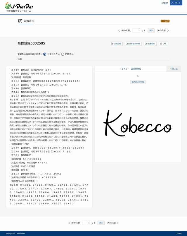 折田楓社長が運営するメディア名『Kobecco』が「老舗地元誌と"酷似"」でトラブル勃発、『月刊神戸っ子 KOBECCO』編集長が激白「もう関わりたくない」 ピンズバNEWS編集部 2024.11.29 (4/4ページ) 1ページ目から読む ■【画像】PR会社が運営していたメディアが「地元誌と酷似…」かつて同誌に出演していた折田氏 2023年にmerchuが『Kobecco』で商標登録を取ろうとした際、『月刊神戸っ子 KOBECCO』と「類似」であることから、特許庁に“拒絶”されている。 ※画像は特許庁「特許情報プラットフォーム」より。引用元の「登録第1099169号」は、服部プロセス社の「神戸っ子」だ ※画像は特許庁「特許情報プラットフォーム」より。引用元の「登録第1099169号」は、服部プロセス社の「神戸っ子」だ ※画像は「テキスト比較ツール Difff」にて作成。左が当初申請、右が補正後の申請 ※画像は特許庁「特許情報プラットフォーム」より ※画像は特許庁「特許情報プラットフォーム」より ※画像は特許庁「特許情報プラットフォーム」より ※画像は『月刊 神戸っ子 KOBECCO』2019年5月号より ※画像は『月刊 神戸っ子 KOBECCO』2019年5月号 ※画像は「merchu」HPより、『月刊神戸っ子KOBECCO』掲載告知(現在は削除) ※画像は折田楓氏のインスタグラム『@kaede.merchu』より、「Kobecco」グッズの展開コーナー。 この画像の記事を読む 1 2 3 4