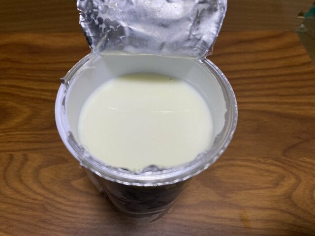 フタを開けたところ。うっすら黄色みがかかった乳白色で、マヨの香りがする。