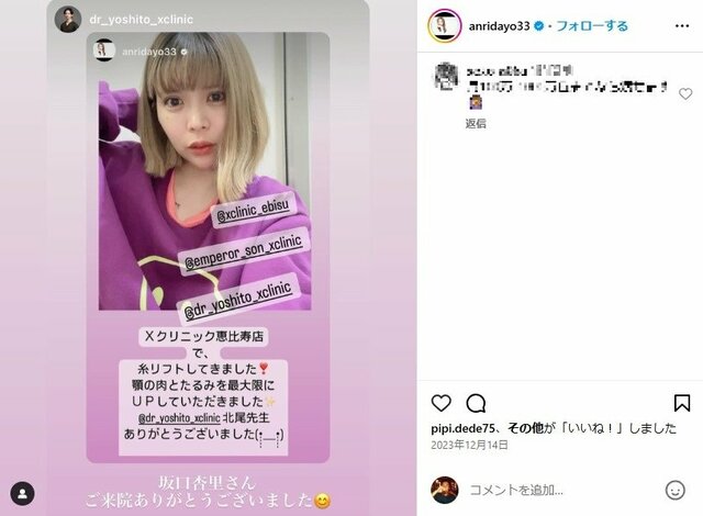 「人生やり直したい」PayPayで援助を求める坂口杏里、不安定な発信のウラで「深夜に大声で連呼…」驚きの近況を目撃 ピンズバNEWS編集部 2024.12.2 女優 (3/3ページ) 1ページ目から読む ■【画像】「人生やり直したい」金欠で“援助”を要請した坂口杏里 首元&手首にはバラのタトゥーが■ 金欠で“援助”を要請した坂口杏里 首元&手首にはバラのタトゥーが見える。 画像は坂口杏里のインスタグラムより 画像は坂口杏里のインスタグラムより 画像は坂口杏里のインスタグラムより 画像は坂口杏里のインスタグラムより この画像の記事を読む 1 2 3