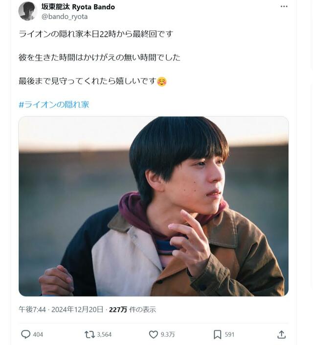 坂東龍汰 Ryota Bando公式X(@bando_ryota)より
