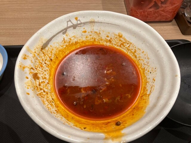 激辛すぎて大バズり中…松屋の最高傑作説もある「水煮牛肉」の開発秘話がガチすぎた ピンズバNEWS編集部 2025.1.17 グルメ (3/3ページ) 1ページ目から読む ■【画像】辛さを物語る真っ赤なスープは、“飲むな危険!?” 鶏ベースのスープに、唐辛子と花椒、ラー油が効いた本格的な四川料理の辛さはクセになる味わいだ。 具材を完食した後の「水煮牛肉」 ※撮影/編集部 この画像の記事を読む 1 2 3