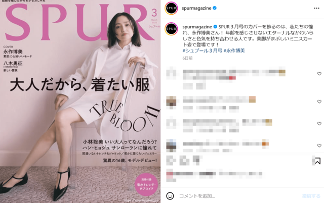 「年齢バグってる」“奇跡の54歳”永作博美、スラリ美脚に釘付け 大人のミニスカート姿を披露 ピンズバNEWS編集部 2025.1.23 女優 エンタメ (2/2ページ) 1ページ目から読む ■【画像】「年齢バグってる」永作博美、スラリ美脚に釘付け 大人のミニスカート姿 ※画像は『SPUR』の公式インスタグラムより 折に触れて《年齢バグってる》と驚きの声が上がる“奇跡の54歳”永作博美。スラリ美脚をあらわにした清楚なミニスカート姿に、ファンならずとも釘付けになりそう。 この画像の記事を読む 1 2