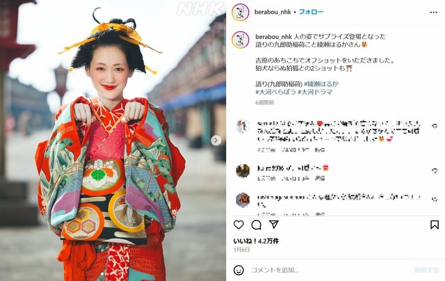 「ビジュアル激変役が似合う女優」ランキング、『べらぼう』で花魁演じた小芝風花を抑えたのは【トップ3】 ピンズバNEWS編集部 2025.2.28 女優 (4/4ページ) 1ページ目から読む ■【画像】映画共演俳優との熱愛も話題になったトップの清楚系女優の変身ショット 綾瀬はるかは、九郎助稲荷として語りを担当する『べらぼう』に人に化けた花魁姿で登場。 『べらぼう』公式インスタグラムより この画像の記事を読む 1 2 3 4
