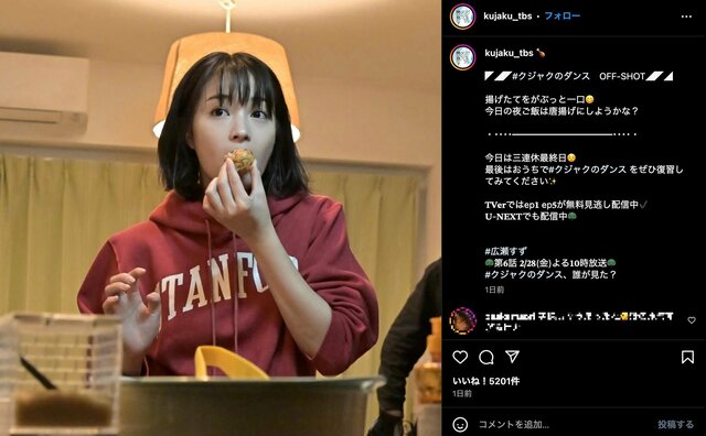 広瀬すず『クジャクのダンス』出始めた考察疲れ 次々に出されるヒントに新キャラ…終わりなき謎解きに脱落者急増か ドラマライター・ヤマカワ 2025.2.28 テレビドラマ (3/3ページ) 1ページ目から読む ■【画像】広瀬すず、“揚げたてをガブッ”『クジャクのダンス』撮影後の貴重な唐揚げもぐもぐショット 食事シーンの多い本作。緊迫したシーンが多い中、癒しになっています。 ※画像は『クジャクのダンス、誰が見た?』公式インスタグラムアカウントより ■TBS『クジャクのダンス、誰が見た?』公式サイト この画像の記事を読む 1 2 3